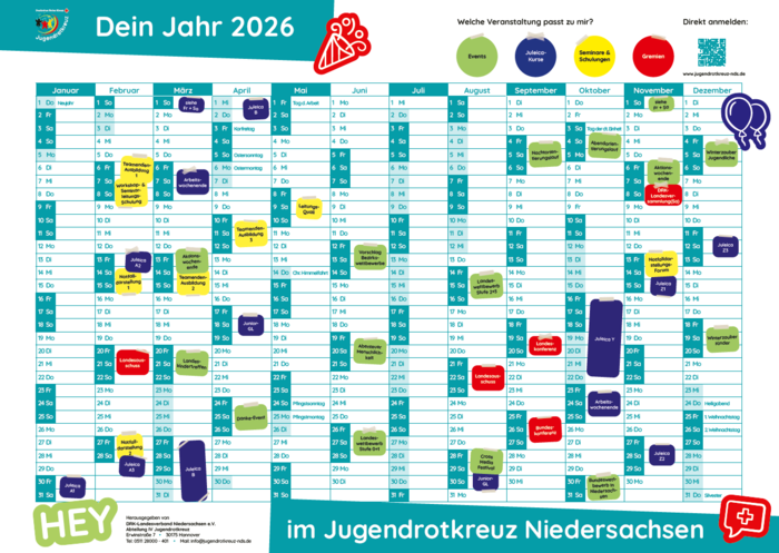 Hier findest du nicht nur alle Termine, sondern auch mehr Infos zu den Veranstaltungen und Angeboten des Jugendrotkreuz Niedersachsen in 2026.